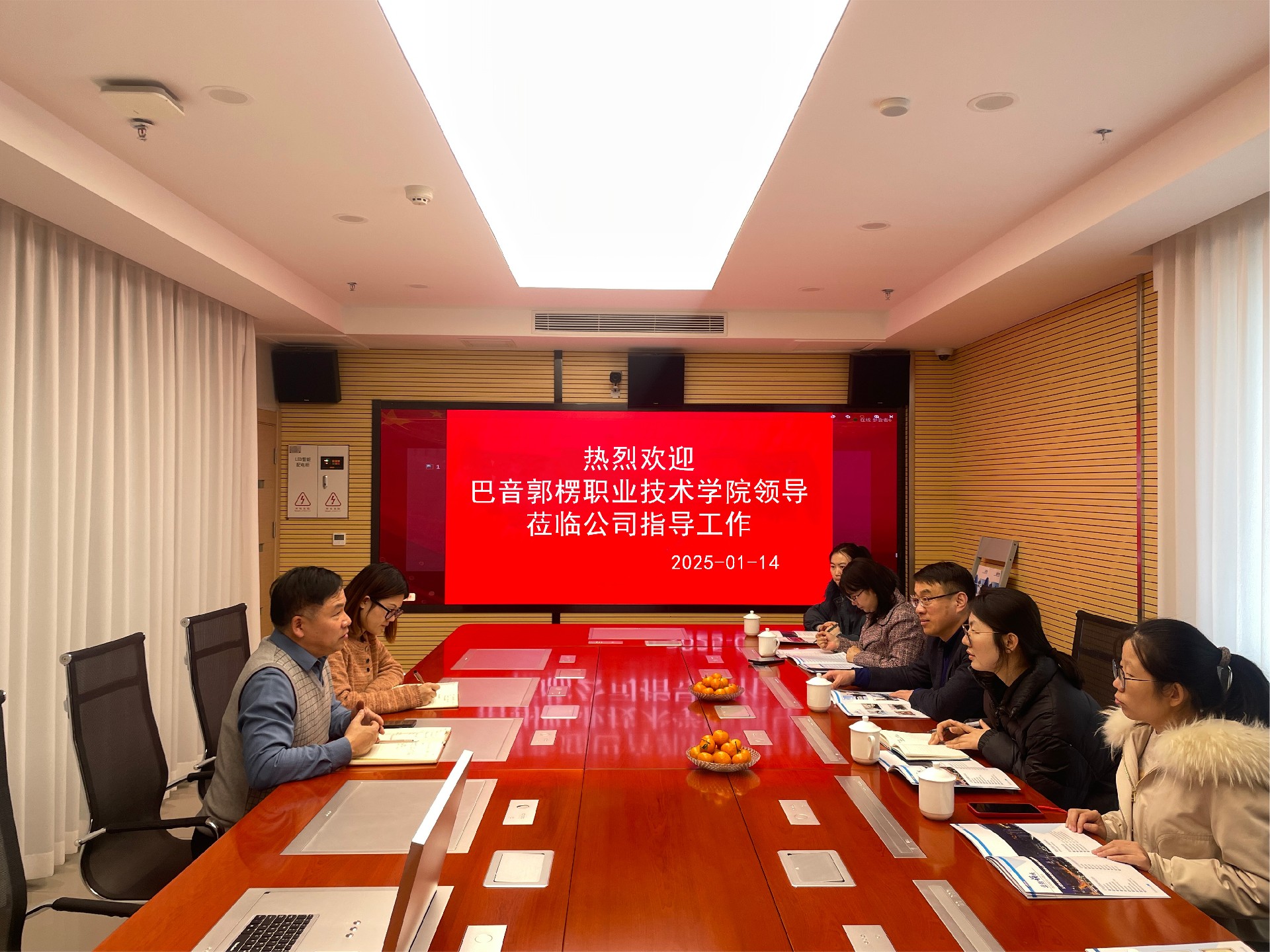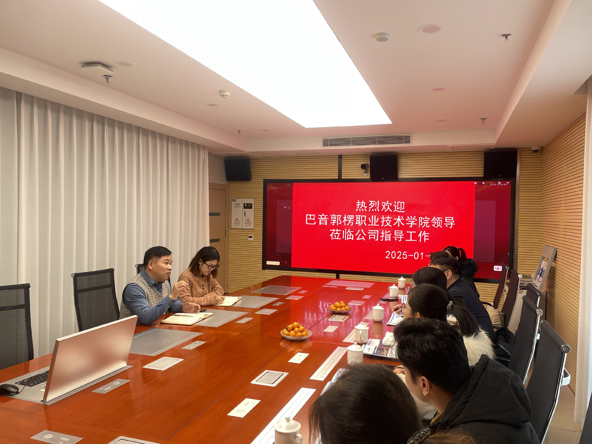 公司對巴音學院領導的來訪表示了熱烈的歡迎。會談中,總經理楊長福主要介紹了公司基本情況,團隊建設、經營范圍以及公司在智慧校園建設方面的先進技術和豐富經驗,并認真了解學院的專業(yè)設置和學生專業(yè)情況。期間,雙方就人才培養(yǎng)、實訓平臺搭建、智慧校園建設等方面進行了深入的溝通和探討。